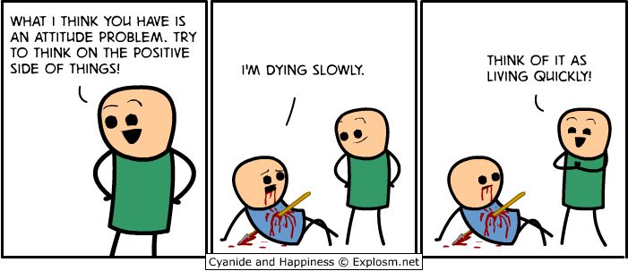 You really think that all of the positive people are buzzing off their superfood smoothie gliding lightly through the universe? I whole-heartedly disagree.