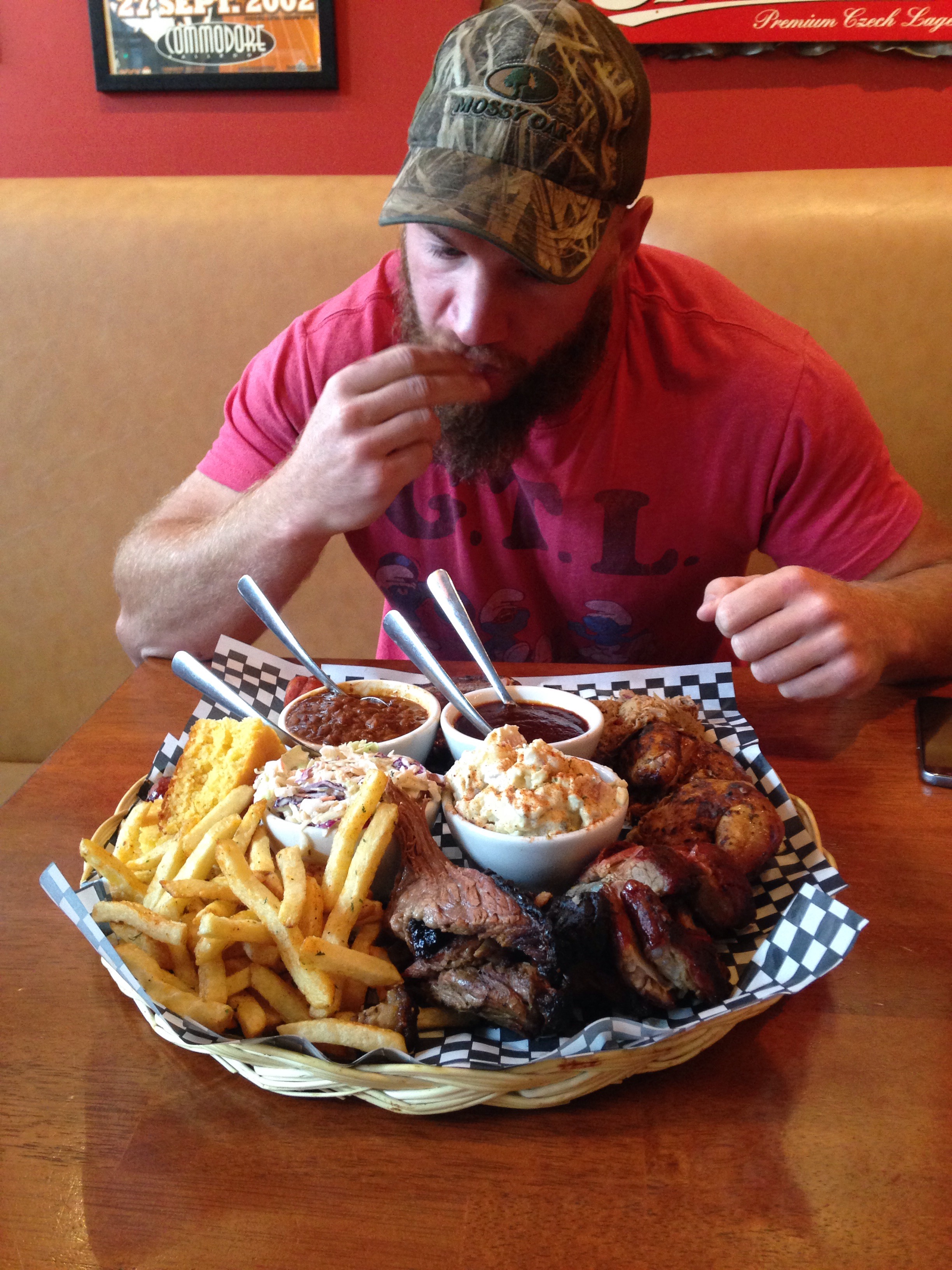 Another big thing that happened this weekend: my first treat meal in WEEKS! It was so amazing guys! There were about 6 different kinds of BBQ meats, fries, and CORNBREAD which I totally went crazy over!