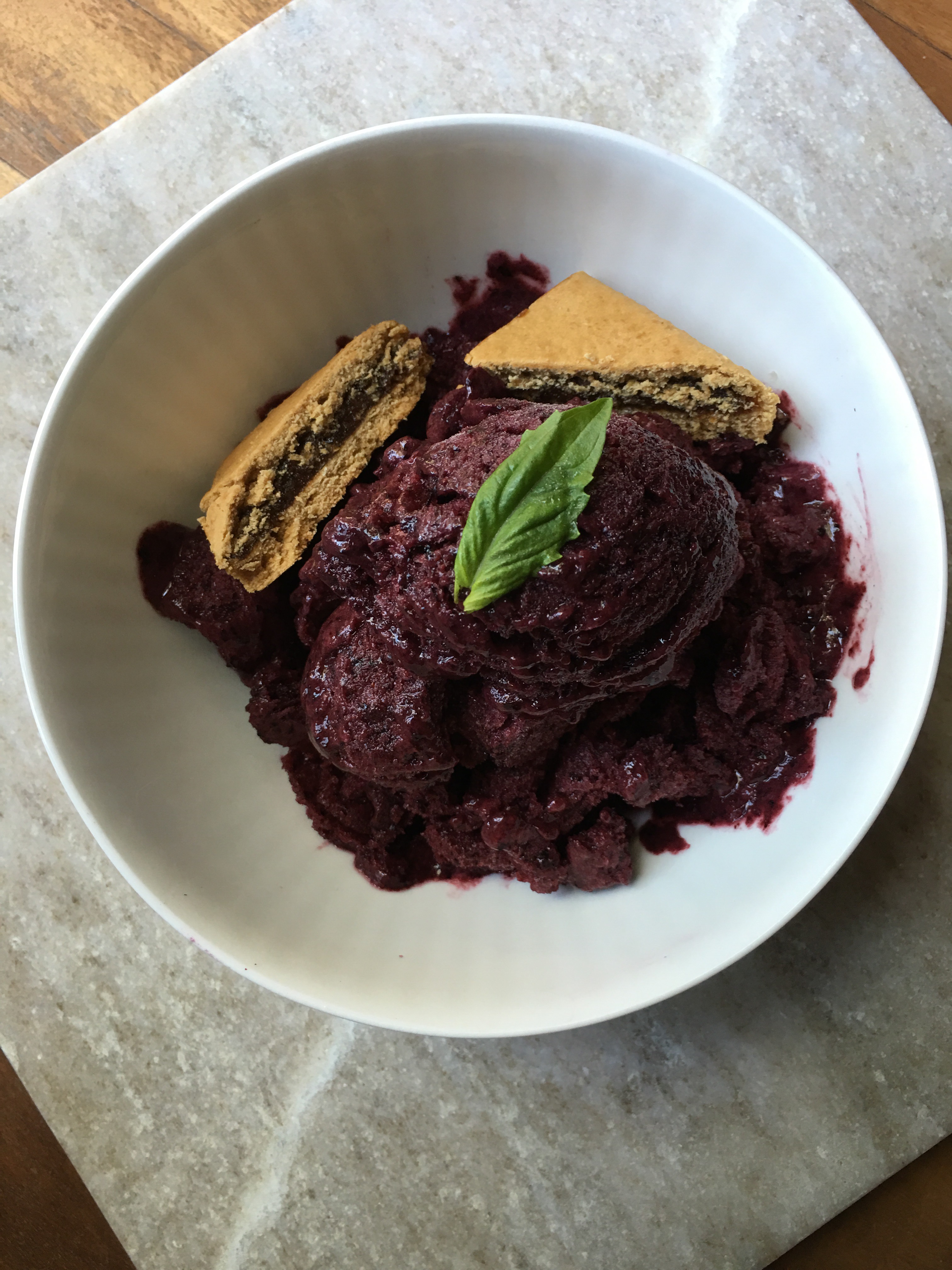 So simple. Blend all ingredients except for the toppings, which is 1 basil leaf and the fig bar. Chop the last basil leaf for garnishing, or swap it for a small one instead. Eat right away, or freeze and seal for later like I did.