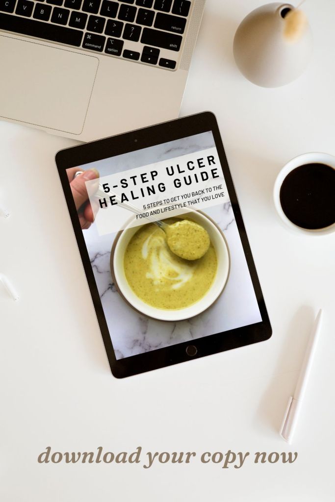 Looking for a resource or guide to help you heal your ulcer? Get the 5 Step Ulcer Healing Guide so you can get back to the food and lifestyle you love.