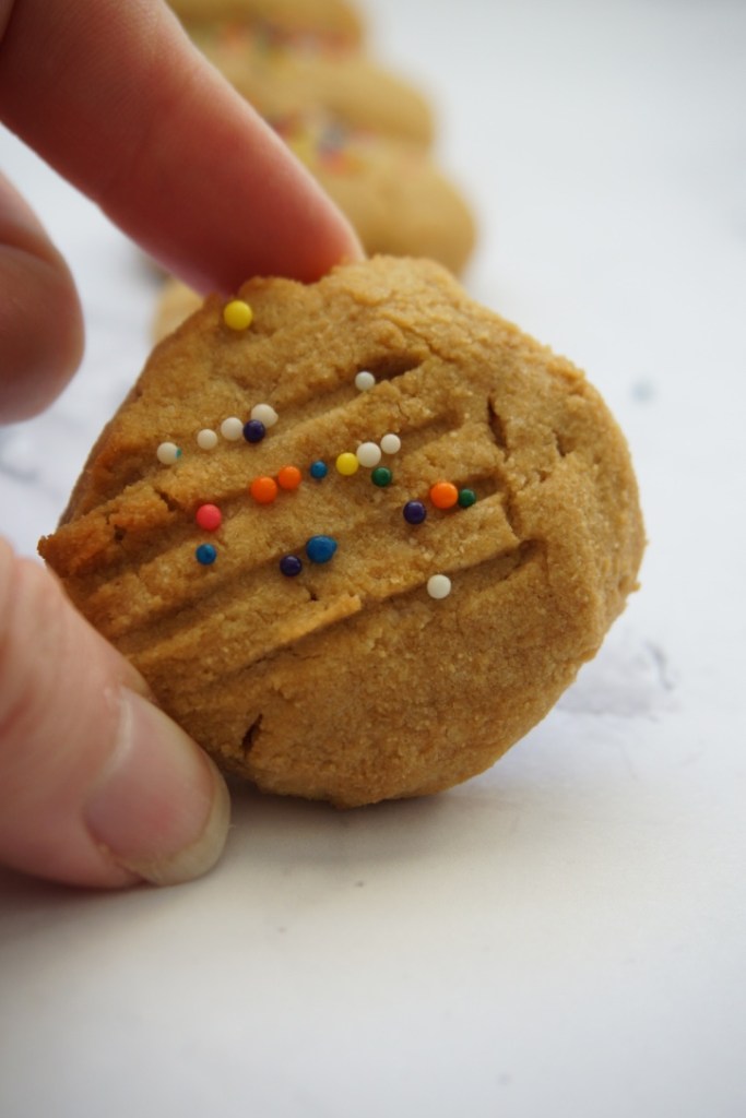 Before we do get there though, I always make it a point to tell you why each recipe is so awesome. Today won’t be any different. These Coconut Flour Sprinkle Cookies really are great. They are a soft, small, delectable treat (and you deserve a treat). These cookies are meant to be mini – smaller than your average cookie. But don’t sweat it! You can eat as many as you want. Double the batch and don’t even share.